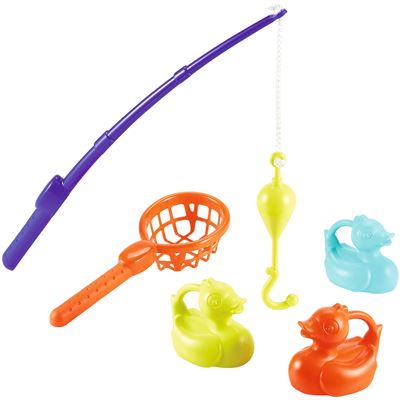 Mit 54 verschiedenen Fischen und 2 Angelruten und einem Fischteich ist das Angelspiel ausgestattet. Das Angelspiel ist perfekt für die Badewanne. Man legt die Fische in den Inflator und nimmt das Gewässer mit in die Badewanne und fängt von dort aus die Fische. Das Angelspiel eignet sich ab 3 Jahren.