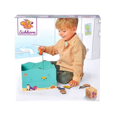 Bei diesem Angelspiel fängt man mit einer flauschigen Angel die Meeresbewohner aus einer kleinen Box. Das Spiel eignet sich für Kinder ab 2 Jahren. Mit dem Angelspiel können bereits frühzeitig die Motorik, Konzentration und Sprachentwicklung verbessert werden.