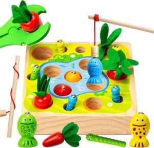 Dieses Magnetische Angelspiel ist für Kinder ab dem zweiten Lebensjahr ausgelegt. Es ist ein Montessori Spiel, welche die enge Bindung & Interaktion zwischen Kindern und Eltern verbessert. Man fängt hierbei Würmer und Fische.