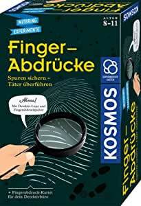 Mit diesem Detektiv Experimentierkasten, können sich Kinder im Alter von 8 bis 11 Jahren wie Profi-Detektive fühlen. Sie müssen Fingerabdrücke von Tatorten sichern und an diesen weiter forschen, um letztlich den Täter zu entlarven.