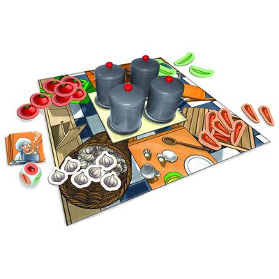 Chef Alfredo ist ein begnadeter Koch, doch leider auch ein fürchterlicher Chaot. Ständig vertauscht er auf seinem Herd die Kessel mit Möhren-, Tomaten-, Bohnen- und Knoblauchsuppe. Die Spieler müssen dabei im Kopf behalten, welche Zutat wohin gehört. Ein Würfel zeigt an, ob sie schon wieder Töpfe vertauschen oder Nachschub in den passenden Topf werfen müssen. Und wenn man es nicht mehr weiß? Dann tut man einfach so, als ob, und hofft, dass die Mitspieler darauf hereinfallen. Denn Punkte gibt es jedes Mal, wenn man eine Zutat erfolgreich losgeworden ist – oder wenn man einem Mitspieler einen Fehler nachweisen konnte. Wer falsch liegt, geht dagegen leer aus. Ein köstliches Vergnügen: Dieses pfiffige Würfelspiel schmeckt sowohl Bluffern wie auch Gedächtniskünstlern.