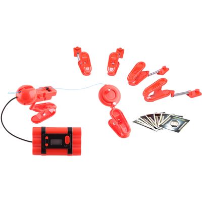 Das Spiel beinhaltet: 1 Bombe, 1 Sensor, 8 Objektkarten, 2 Spezialkarten, 6 verschiedene Klemmschlüsse: 4 einfache Klemmschlüsse, 1 Klemmschluss mit Seilrolle (10 Meter Seil), 1 Klemmschluss mit Gummikappe.