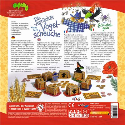 Der Zauberrabe Schnabelgrün hüpft gemeinsam mit den Kindern von Strohballen zu Strohballen und versteckt dabei Getreidekörner. Wer sich gut merken kann, unter welchem Strohballen die Körner liegen, muss nun noch versuchen, an der verrückten Vogelscheuche vorbeizukommen – und sich dabei vor den drei faulen Weizenkörnern in Acht nehmen… Ziel des Spiels ist es, so viele Getreidekörner wie möglich zu sammeln.