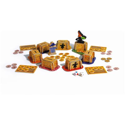 Inhalt: 2 Spielfiguren, 2 Würfel, 8 Strohballen, Spielchips, Spielanleitung.