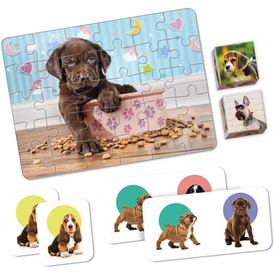 Eine Box mit verschiedenen Spielen für unzählige Stunden voller Spaß! Mit 4 Spielen in einer Box ist dieses umfassende Set das ideale Spiel zum Mitnehmen! Es enthält: 1 Puzzle, 6er-Würfelpuzzle, 1 Memo und 1 Domino-Spiel, alles mit lustigen Abbildungen von süßen Tierbabies gestaltet.