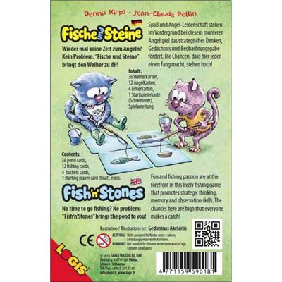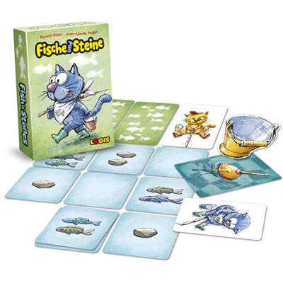 Spielziel: Ziel ist es mehr Fische zu angeln als seine Mitspieler (jeder Fisch ist 1 Pluspunkt) und so wenig Steine wie möglich (jeder Stein ist 1 Minuspunkt).