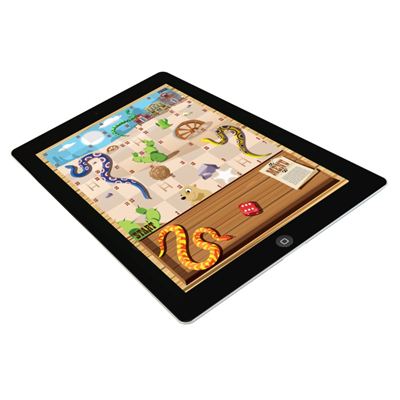 Das iPawn® Leiterspiel erweckt zischende Schlangen zum Leben und darüber freut sichtierisch, wer gerade nicht am Zug ist… Denn taucht eine Schlange auf, heißt es Felderaufgeben, die mit virtuellem Würfelglück und dem geschickten Setzen von echten Leitern aufdas iPad bereits erobert wurden. Schließlich gilt es für jeden der zwei bis vier Mitspieler, alsErster das Zielfeld zu erreichen.