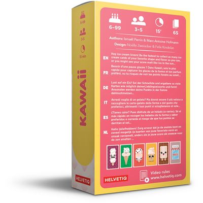 In Kawaii musst du so viele Karten wie möglich deiner Lieblingseissorte ergattern. Leg deine Karten ab, beobachte sorgfältig die Stapel der anderen und reagiere schnell, um die zu bekommen, die du am liebsten magst. Die Kirschen geben Bonuspunkte. Wenn du hingegen vor den verschlossenen Türen der Eisdiele landest, besteht die Gefahr, dass deine Punkte in der Sonne schmelzen …