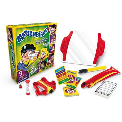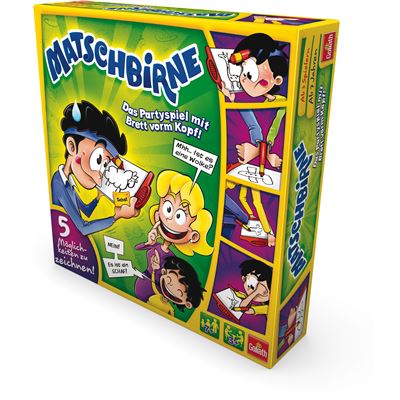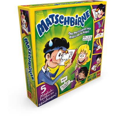 Bei Matschbirne müssen die Spieler mit vollem Körpereinsatz ihr Zeichentalent unter Beweis stellen. Gespielt werden kann einzeln aber auch im Team. Einer der Spieler zieht eine Karte und muss den Begriff der darauf steht zeichnen. Jedoch nicht mit Händen sondern unter erschwerten Bedingungen. Der Zeichner bindet sich das Matschbirne-Stirnband um, an welchem ein Stift befestigt ist. Nun gilt es mit geschickten Kopfbewegungen zu zeichnen. Das ist schwieriger als gedacht und sorgt für jede Menge Lacher! Ein verrücktes Familien-Party Spiel ab 7 Jahren.