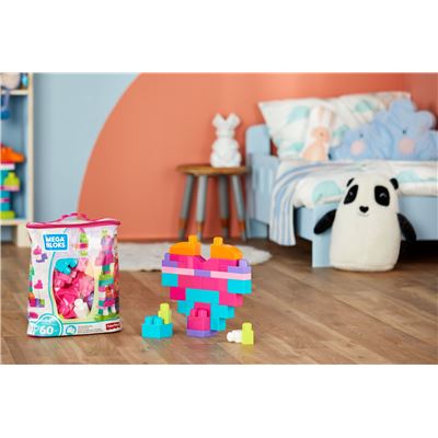 Dieser mittelgroße Bausteinebeutel von Mega Bloks begeistert kleine Mädchen mit seinen rosa- und lilafarbenen Bausteinen. Zusammen mit den gelben und fliederfarbenen Bausteinen lassen sich die schönsten Schlösser für tolle Abenteuer bauen. Beim Bauen von hübschen Türmchen, die für eine Prinzessin angemessen sind, kann sich das Kind die märchenhaftesten Geschichten ausdenken. In den umweltfreundlichen, PVC-freien, mittelgroßen Bausteinebeutel passen 60 Teile. Alter: Ab 12 Monaten Merkmale: 60 Bausteine für stundenlangen Spielspaß, Stabiler und umweltfreundlicher Beutel mit Riemen für einfaches Aufbewahren und Tragen der Bausteine, Passend für die anderen Mega-Bloks-Produkte für noch mehr Spaß