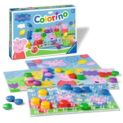 Colorino geht ganz einfach und macht vor allem alleine Spaß: Bildvorlage auswählen, unter die Stecktafel schieben und das tolle Peppa Pig Bild mit den bunten Farbsteckern nachstecken! Die großen Stecksteine sind bestens für Kinderhände geeignet. Die Bildvorlagen zeigen bunte Bilder von Peppa Pig und auch schwarz-weiß Bilder. Diese können die Kinder frei gestalten und so ihrer Kreativität freien Lauf lassen. Das einfache Spielprinzip begeistert Jungen und Mädchen gleichermaßen und macht bis ins Vorschulalter Spaß. Colorino ist eine ideale Kinderbeschäftigung und ein wunderbares Geschenk zu besonderen Anlässen wie Ostern, Weihnachten oder zum 2. Geburtstag.