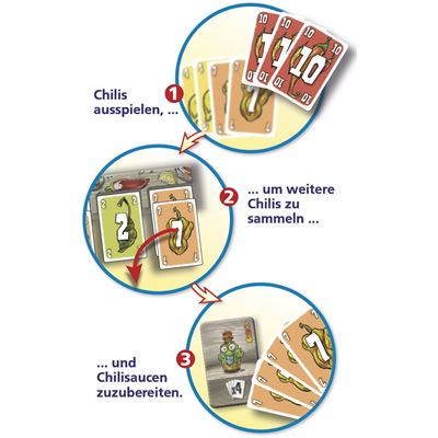Der Weg zur schärfsten Saucen-Sammlung: Reichlich Chilis sammeln, um mit einem ’sauscharfen‘ Kartendeck die feurigsten Saucen herzustellen. Je schärfer die Sauce, desto gewinnbringender. Dabei sind gutes Timing und Geschick beim Zutatensammeln nötig, damit ausreichend Chilis gleicher Art ihren Geschmack zur Geltung bringen können. Wessen Sammlung ist am feurigsten? Ein raffiniertes Kartenspiel rund um knackige Chilis und feurige Saucen.