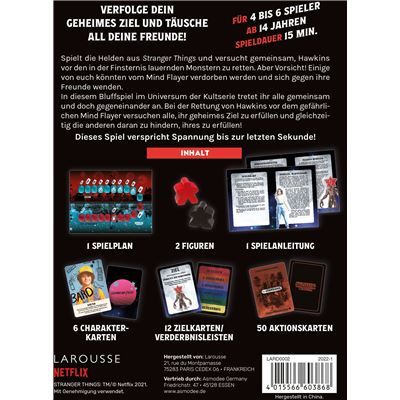 Spielt die Helden aus Stranger Things und versucht gemeinsam, Hawkins vor den in der Finsternis lauernden Monstern zu retten. Aber Vorsicht! Einige von euch könnten vom Mind Flayer verdorben werden und sich gegen ihre Freunde wenden.