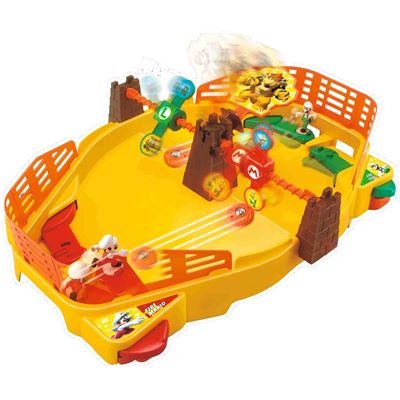Das Super Mario Fire Mario Stadium für Kinder ab fünf Jahren ist ein rasantes Action-Shooting-Spiel, das wie ein Flipper aufgebaut ist. Wer den Bowser in der Mitte als erstes zu Fall bringt, hat gewonnen. In diesem Spiel sind zwei Feuerbälle und zwei Super Mario Sammelfiguren enthalten, die auch in allen anderen Super Mario Gesellschaftsspielen von EPOCH Games mit dem Zusatz Link System verwendet werden können. Das Spiel ist für zwei bis vier Spieler geeignet.