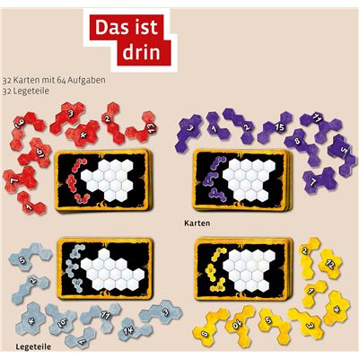 Kurze Regeln – extrem spannender Knobelspaß! Bei diesem rasanten Spiel gilt es, möglichst schnell die richtigen Legeteile zu finden und sie passend auf der eigenen Aufgabenkarte zu platzieren. Hier ist geschicktes Drehen & Wenden gefragt! Mit der richtigen Mischung aus Konzentration und Schnelligkeit können die Spieler die Aufgaben rechtzeitig lösen. Doch schon in der nächsten Runde kann ein Anderer flinker sein … Dabei treten bis zu vier Spieler gegeneinander an – zwei Schwierigkeitsstufen machen Anfängern und Profis Spaß!