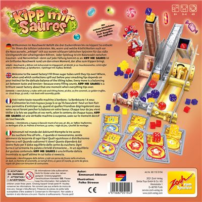 In einem spektakulären dreidimensionalen Gestell warten Aroma-, Form- und Packröhre darauf, mit Würfeln befüllt zu werden. Sobald das Gewicht der Würfel Röhren zum Kippen bringt, purzeln alle Würfel heraus. In diesen Momenten dürfen die Spieler sich neue Zutaten für Süßigkeiten holen, Süßigkeiten mit Karten in Form bringen und schließlich das Gesammelte verpacken. Taktisch schlau gilt es, die unterschiedlichen Gewichte und Farben der Würfel so einzusetzen, dass die leckersten Leckereien in den eigenen Packungen ankommen.