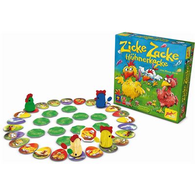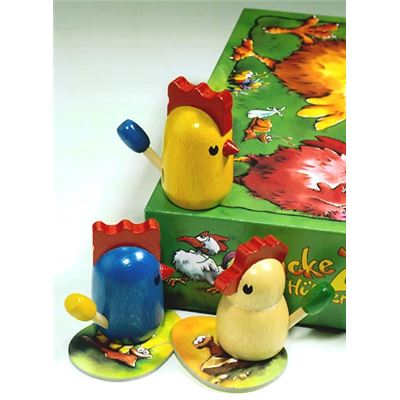 Der mehrfach preisgekrönte Klassiker unter den besten Kinderspielen! Ziel des Spiels ist es, sich mit den Federn der anderen Hühner zu schmücken. Das eigene Huhn vorwärts bewegen darf, wer das vor ihm liegende Bildmotiv im Hühnerhof aufdeckt. Überholt ein Huhn ein anderes Huhn, darf es diesem alle Federn ausrupfen und sich selbst einstecken. Die rasante Hühnregedächtnisrallye feiert im Jahr 2013 ihren 15. Geburtstag und begeistert bald schon die Kinder der ersten Kinder, die mit ihr groß wurden.